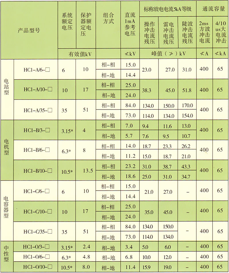 A、電站型:適合各種變壓器、開關(guān)、母線的過電壓保護(hù)