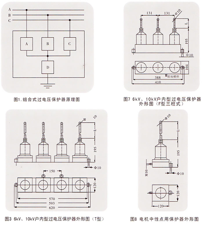 1、無間隙組合式過電壓保護(hù)器 2、串聯(lián)間隙組合式過電壓保護(hù)器 保護(hù)對(duì)象: