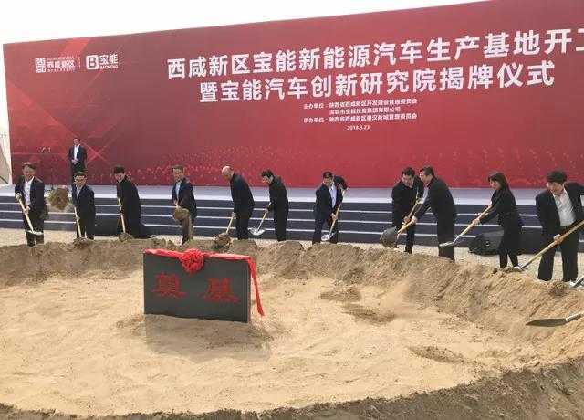 3月23日西咸新區(qū)寶能新能源汽車生產(chǎn)基地開工暨寶能汽車創(chuàng)新研究院揭牌儀式在陜西省西咸新區(qū)秦漢新城舉行。該項(xiàng)目總投資約400億元,規(guī)劃產(chǎn)能100萬(wàn)輛(其中一期50萬(wàn)輛)新能源汽車及配套項(xiàng)目,整車和零部件制造產(chǎn)值將超過(guò)千億元。這是寶能在新能源汽車產(chǎn)業(yè)的重大布局,也是西咸新區(qū)開工建設(shè)的千億級(jí)工業(yè)產(chǎn)業(yè)項(xiàng)目。
